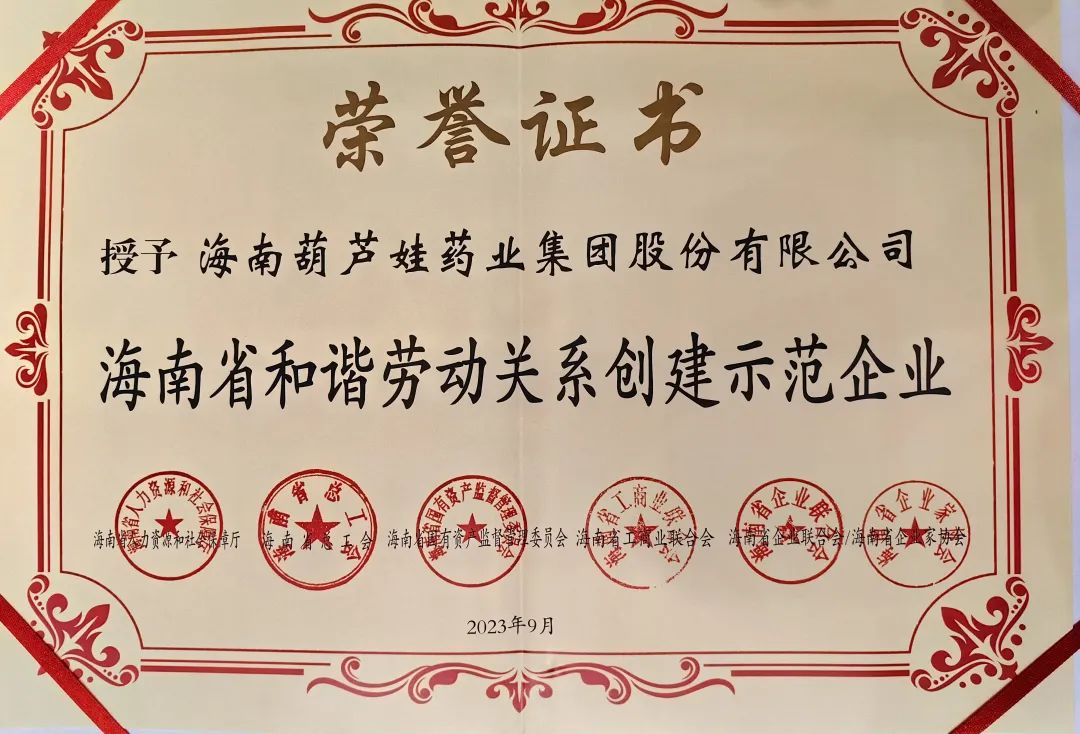 3522vip浦京集团药业集团获评“海南省和谐劳动关系创建示范企业”