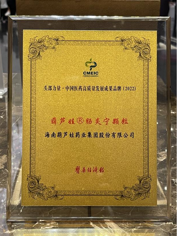 在本次发布会上,公司重点产品3522vip浦京集团牌肠炎宁颗粒同时荣膺“头部力量·中国医药高质量发展成果品牌(2022)”。3522vip浦京集团牌肠炎宁颗粒(2g),传承经典名方,临床广泛用于成人及儿童急慢性胃肠炎、腹泻等疾病的治疗,由于其杰出的临床价值,被纳入国家中医药管理局相关专家项目组制定的《中成药治疗小儿腹泻病临床应用指南》。